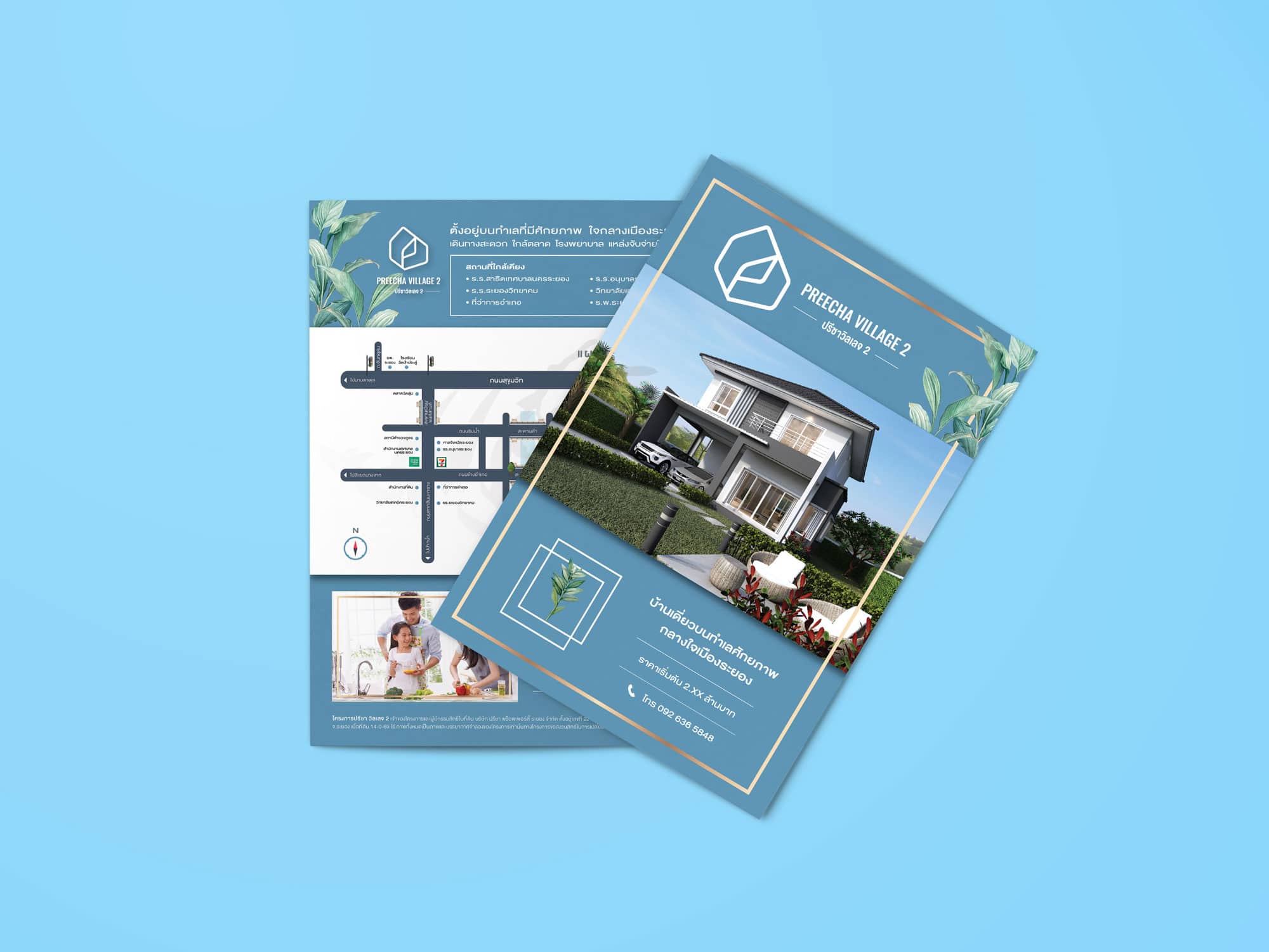 ผลงานการออกแบบโบรชัวร์ ขนาด A4 แบบพับครึ่ง โครงการบ้าน Preecha Village2