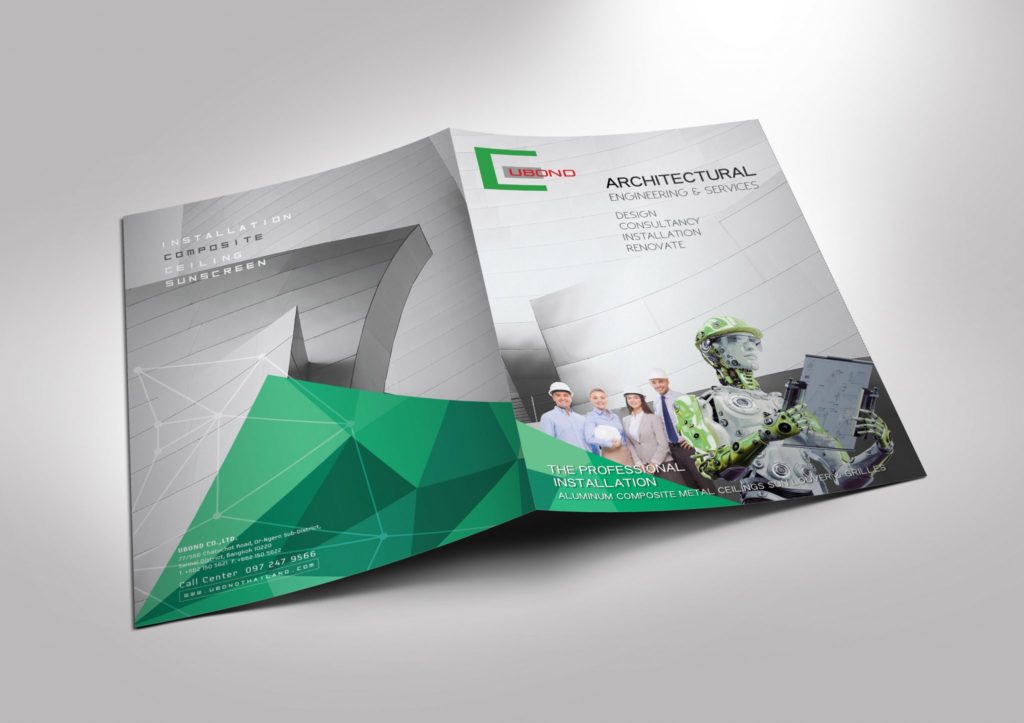 1. ดีไซน์ concept ปกโบรชัวร์ให้เลือก 3 แบบ พร้อม Mock up การนำไปใช้งาน